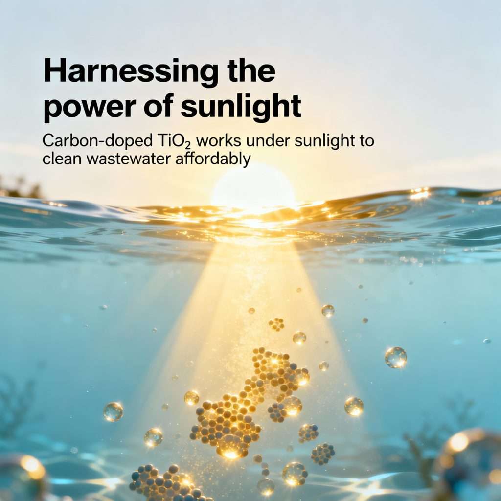 Photocatalysis, driven by light energy, offers another path to sustainable water purification. Titanium dioxide is a well-established photocatalyst, but its activity is limited to ultraviolet light. To overcome this, Dr Ghime and colleagues at NIT Raipur investigated carbon-doped titanium dioxide. Their study, published in IOP Conference Series: Earth and Environmental Science, demonstrated that the modified material could degrade eosin yellow dye under visible light, achieving over 80 percent removal under optimised conditions.