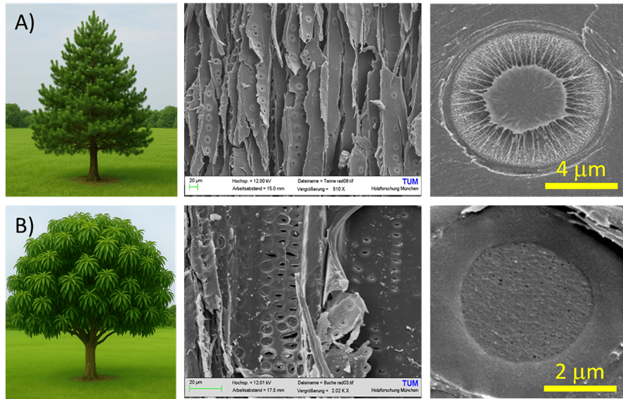 Wood is more than a structural material for construction. Its anatomy includes an intricate network of pores, such as tracheids in coniferous trees, and fibres and vessels in flowering trees, including rays and pits (Figure 1), originally designed to transport water and nutrients in trees, with the latter being primarily responsible for removing nanoparticles. These microscopic pathways provide a natural sieve that can retain particulate matter.
